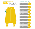 Nuestros sacos de dormir son de tamaño generoso, por lo que no se recomienda comprar tallas más grandes. Este va desde los hombros del niño. Por ejemplo si tu hijo mide 116 cm, su talla es 110 cm